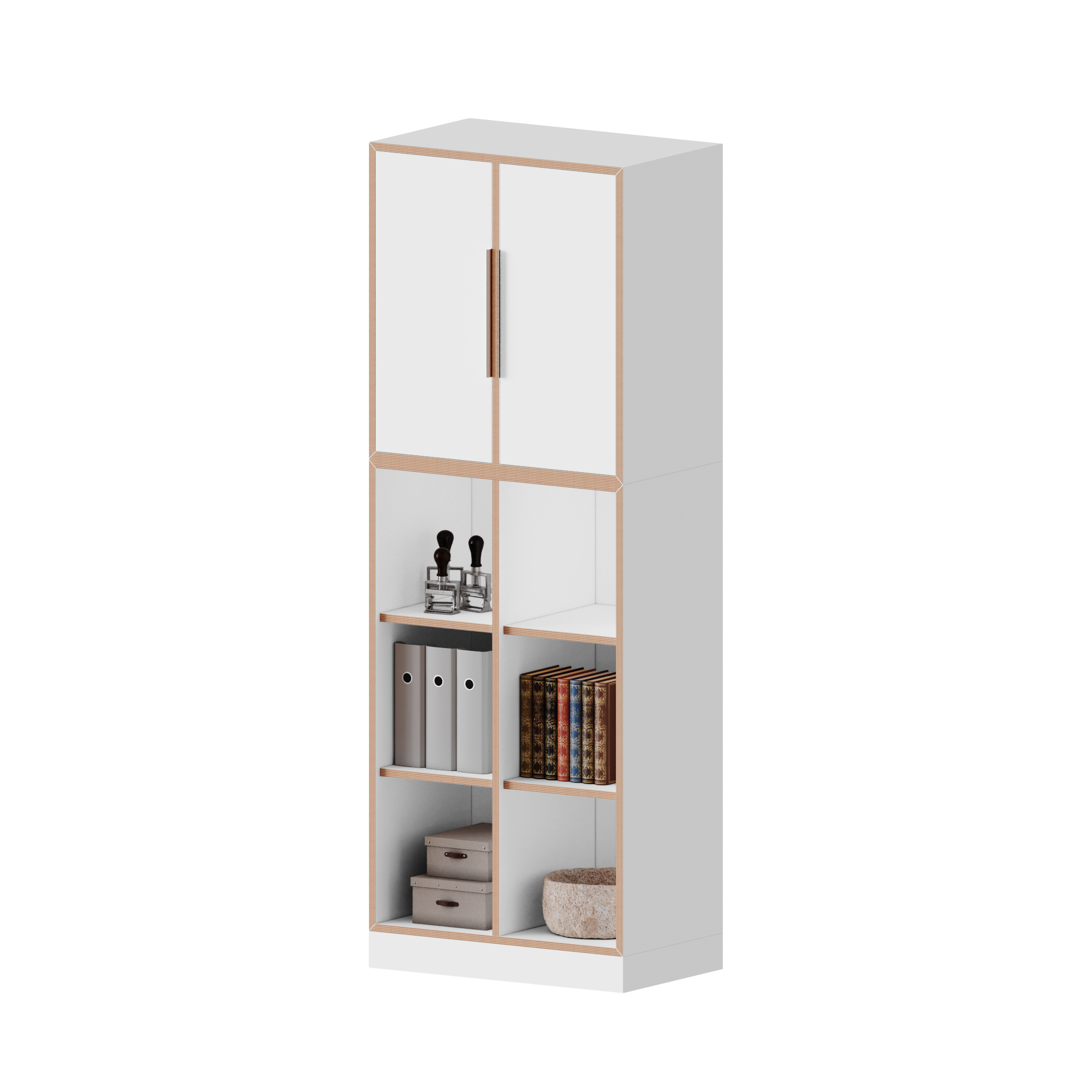 Der Schrank glänzt durch viel Stauraum und Mobilität, wodurch er sowohl in Schulen als auch in Büros seinen Platz findet. Er besteht aus einem Schrank mit 3 Ordnerhöhen und einem zusätzlichen Aufsatzschrank mit 2 Ordnerhöhen. Außerdem ist das Schranksystem jederzeit problemlos erweiterbar.