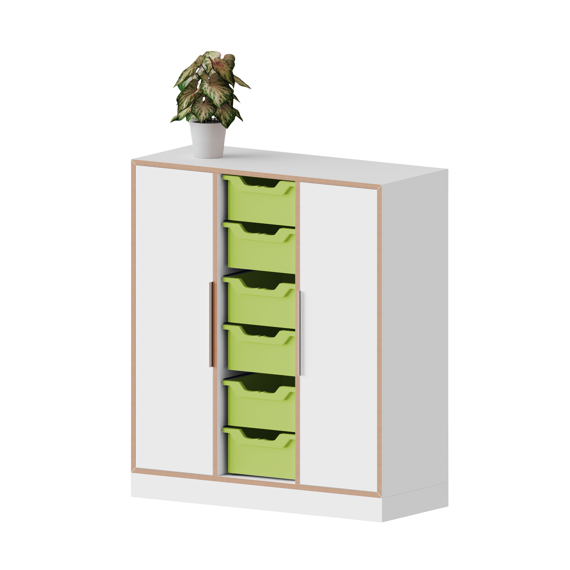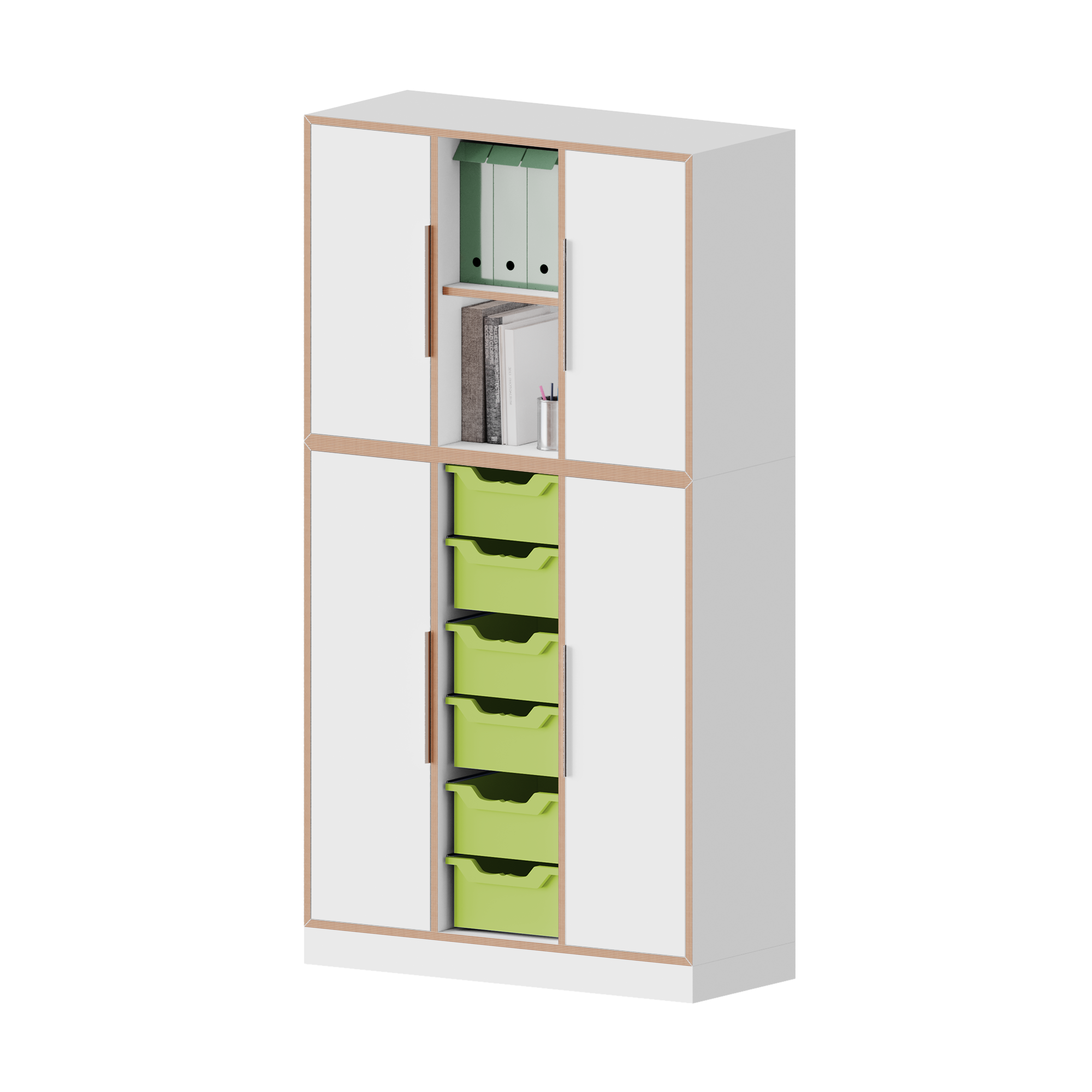 qickly® Schrank, 5 Ordnerhöhen, 3 Türen, 6 große Ergo Tray Boxen