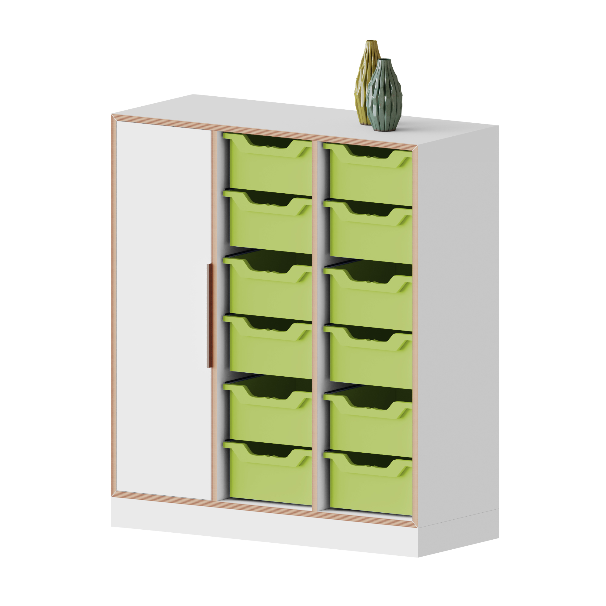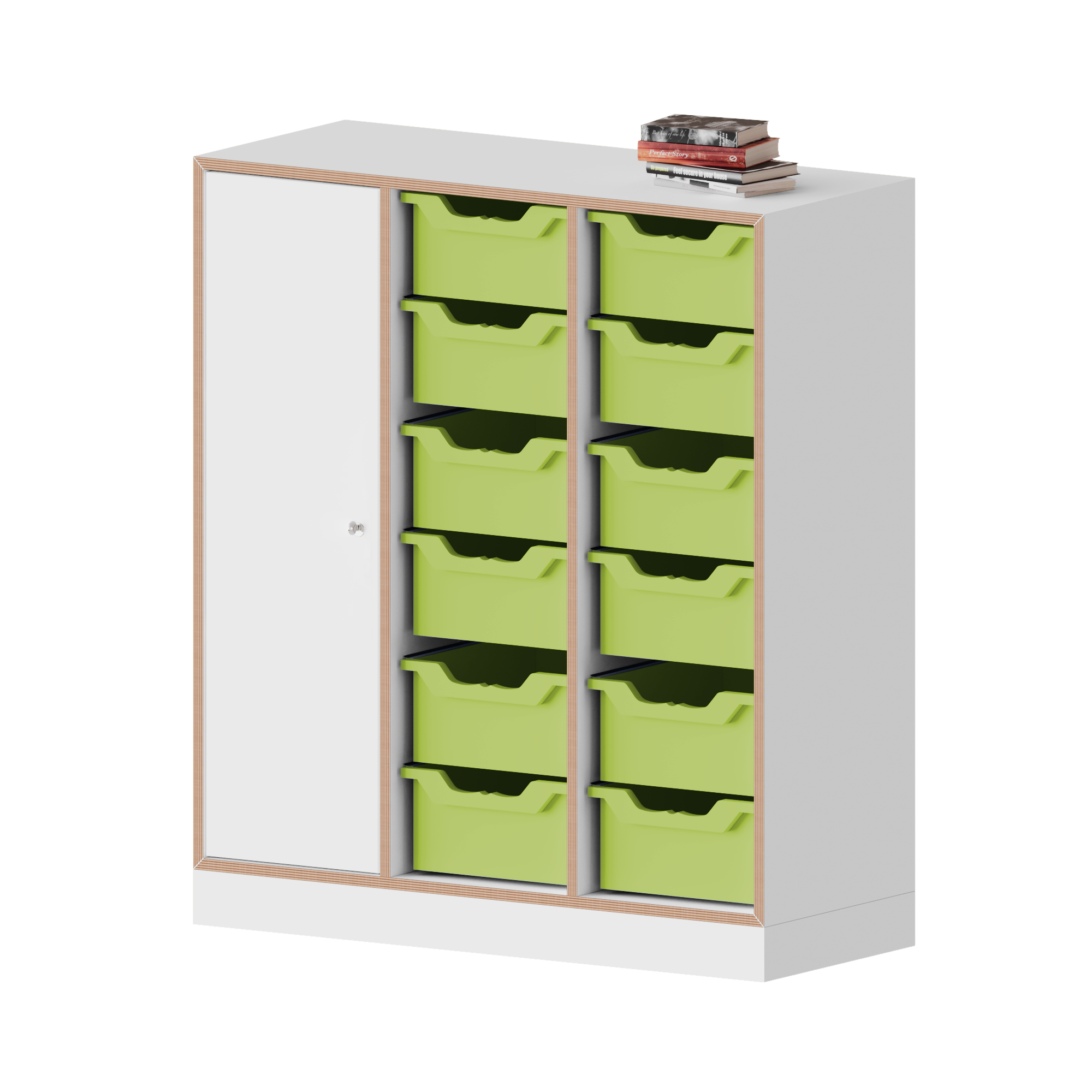 qickly® Schrank, 3 Ordnerhöhen, 1 Tür, 12 große Ergo Tray Boxen