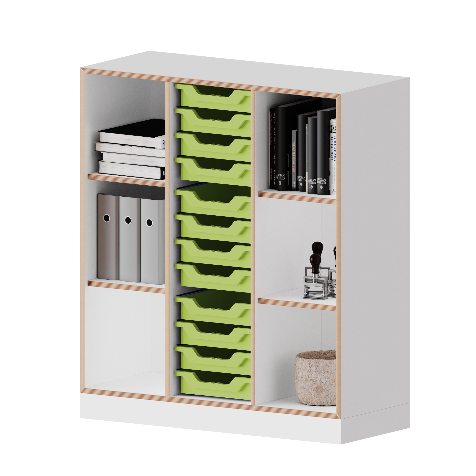 qickly® Schrank, 3 Ordnerhöhen, 12 große Ergo Tray Boxen