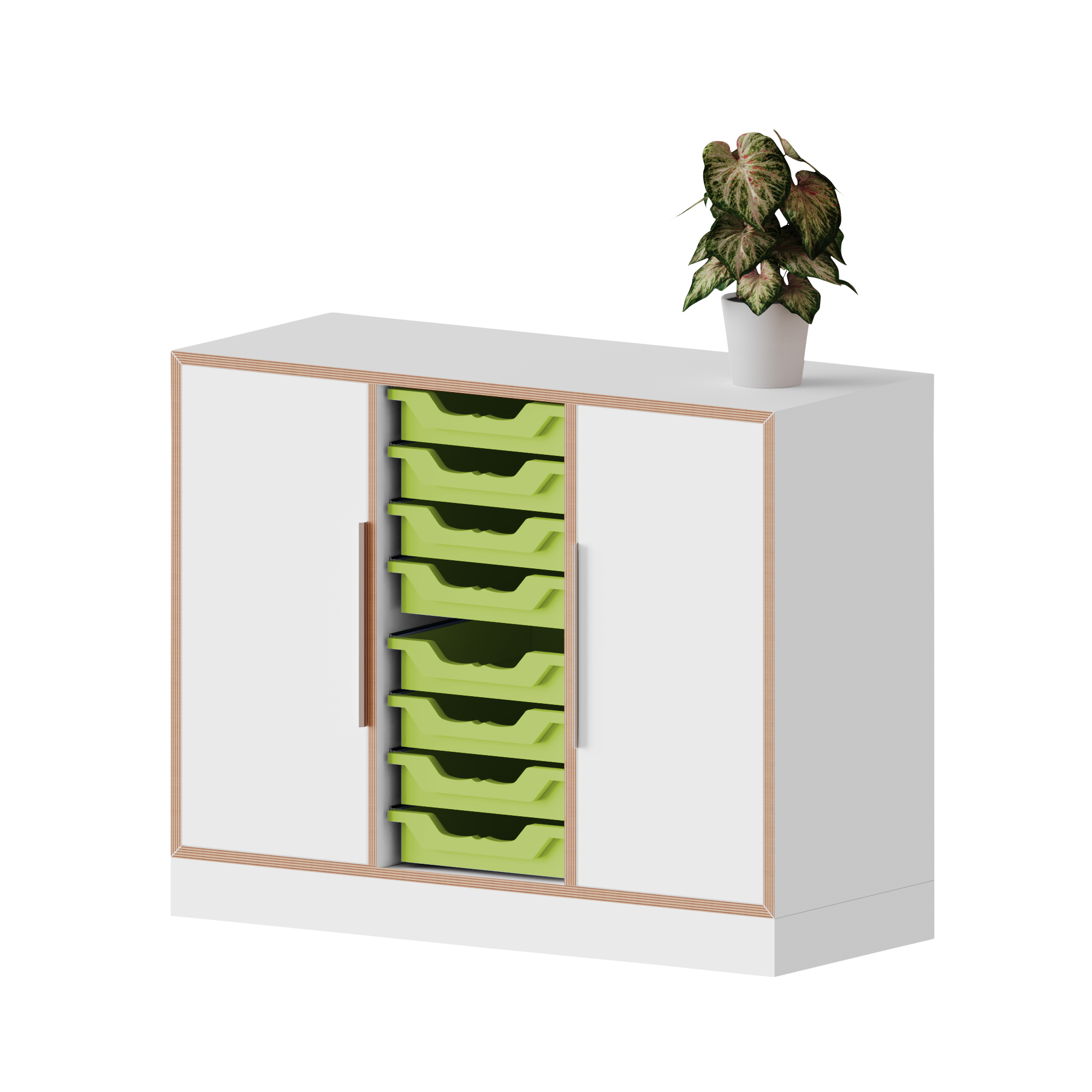 qickly® Schrank, 2 Ordnerhöhen, 2 Türen, 8 kleine Ergo Tray Boxen