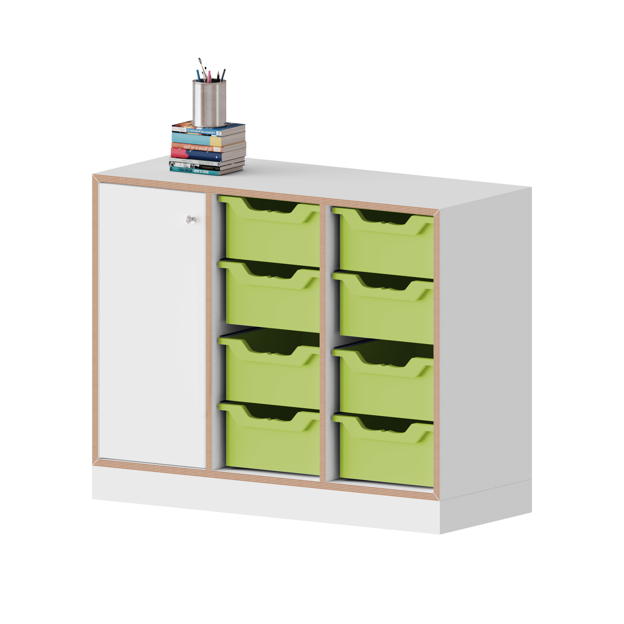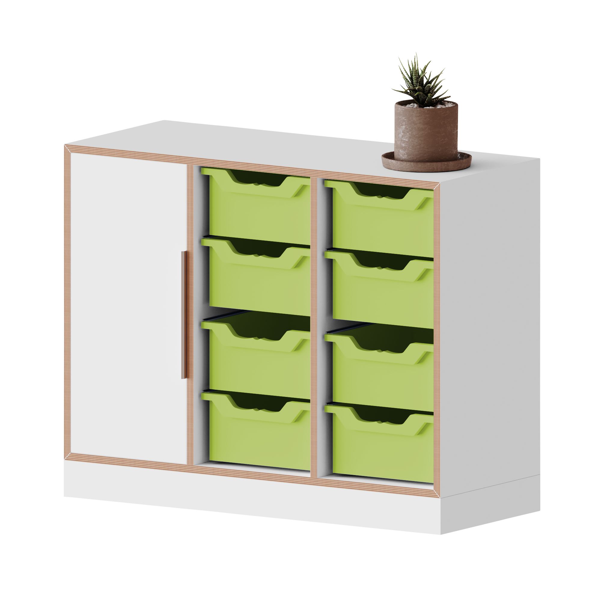 qickly® Schrank, 2 Ordnerhöhen, 1 Tür, 8 große Ergo Tray Boxen