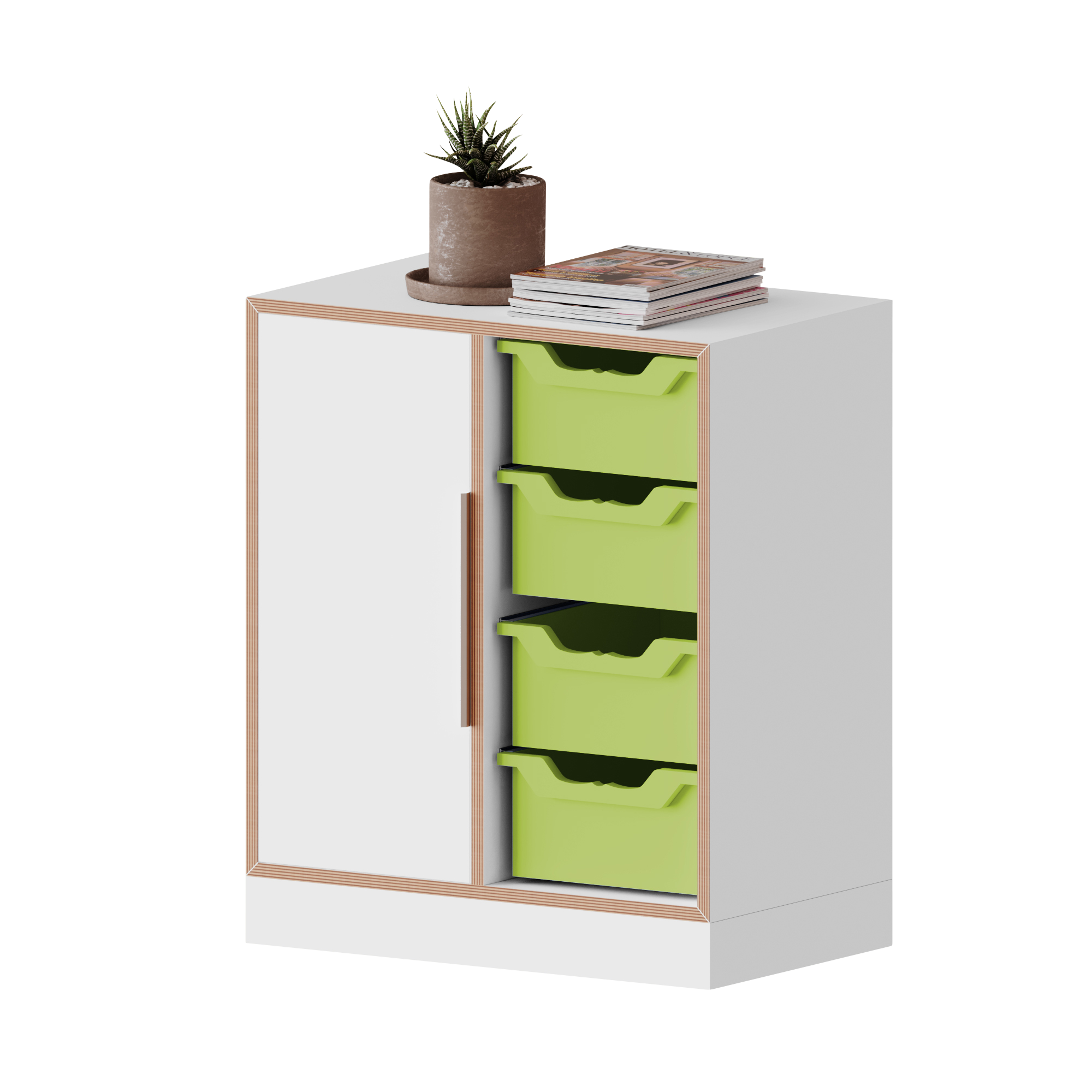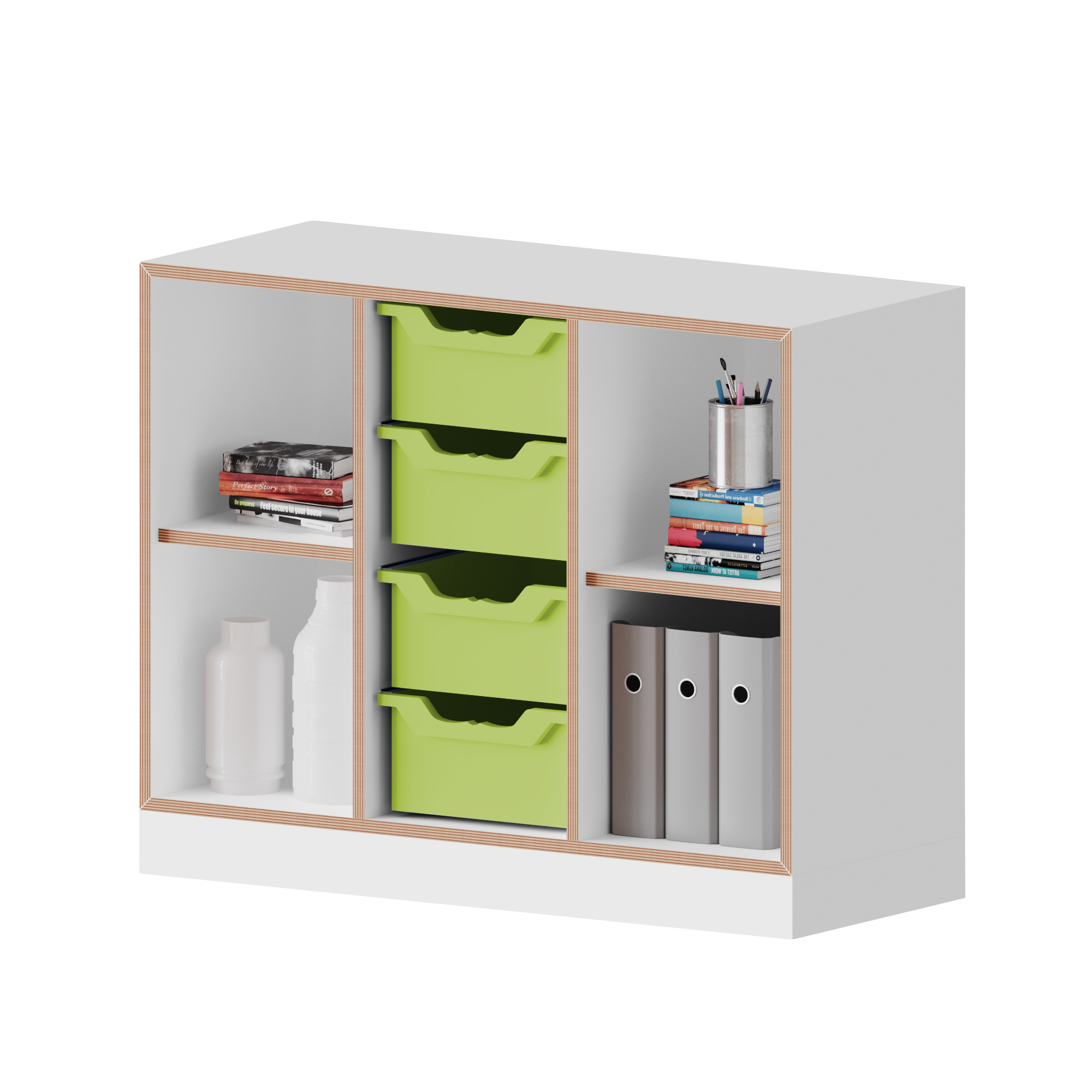 qickly® Schrank, 2 Ordnerhöhen, 1 Tür, 4 große Ergo Tray Boxen