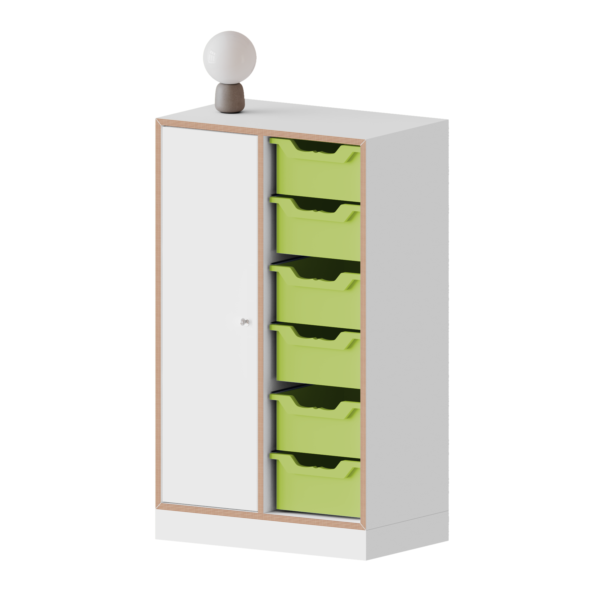 qickly® Schrank, 3 Ordnerhöhen, 1 Tür, 6 große Ergo Tray Boxen