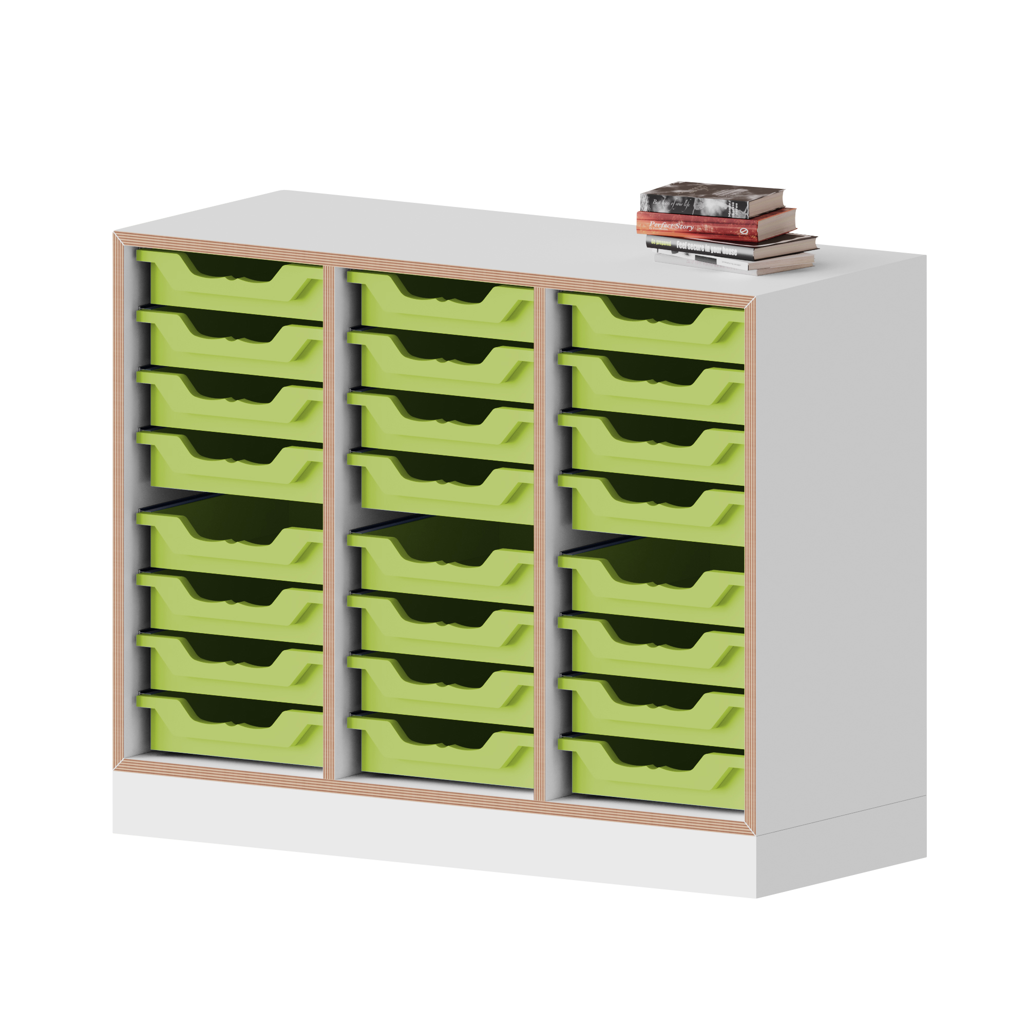 qickly® Regal, 3 Ordnerhöhen, 24 kleine Ergo Tray Boxen