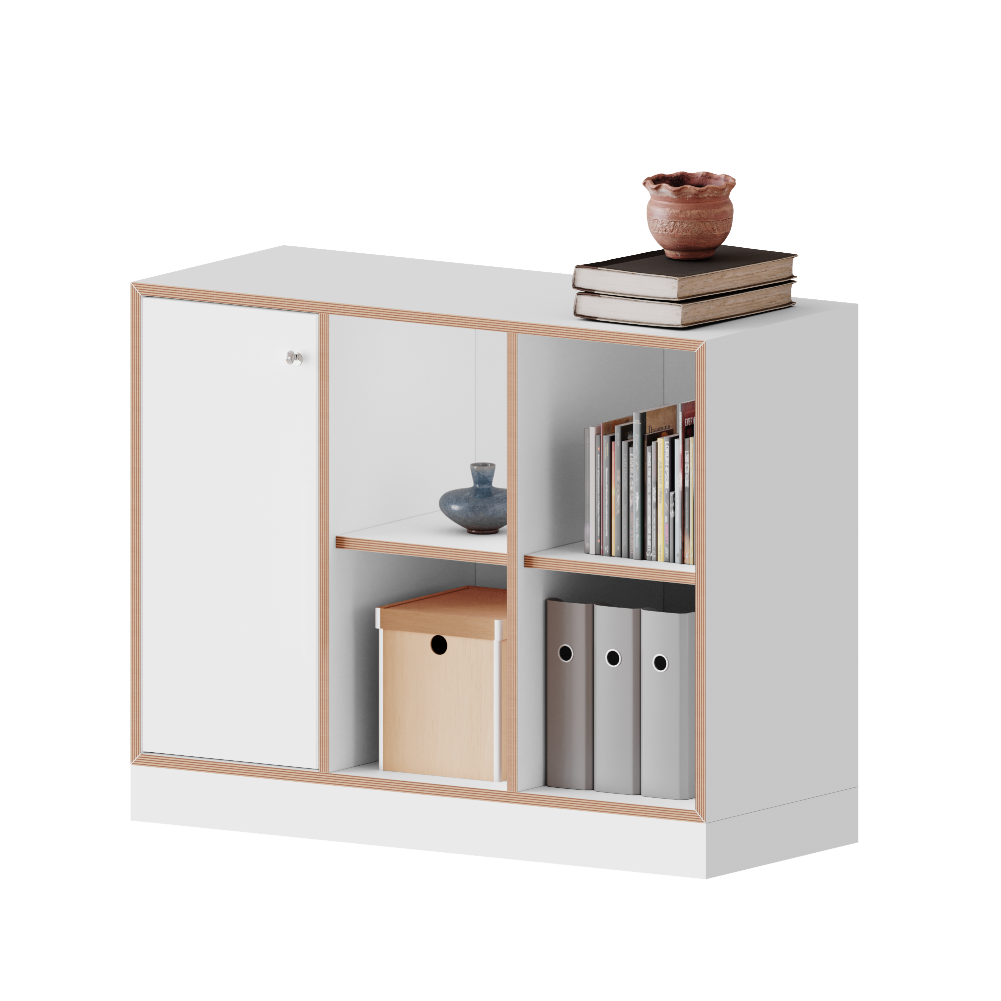 qickly® Schrank. 3 Ordnerhöhen, Tür links mit Schloss