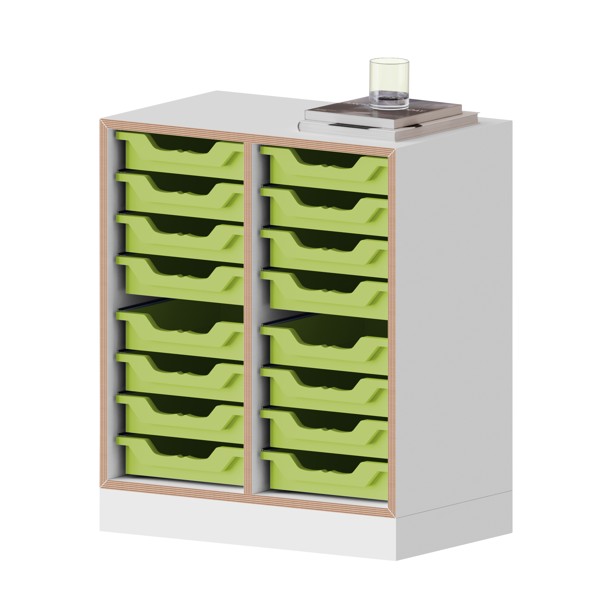 qickly® Regal, 2 Ordnerhöhen, 24 kleine Ergo Tray Boxen