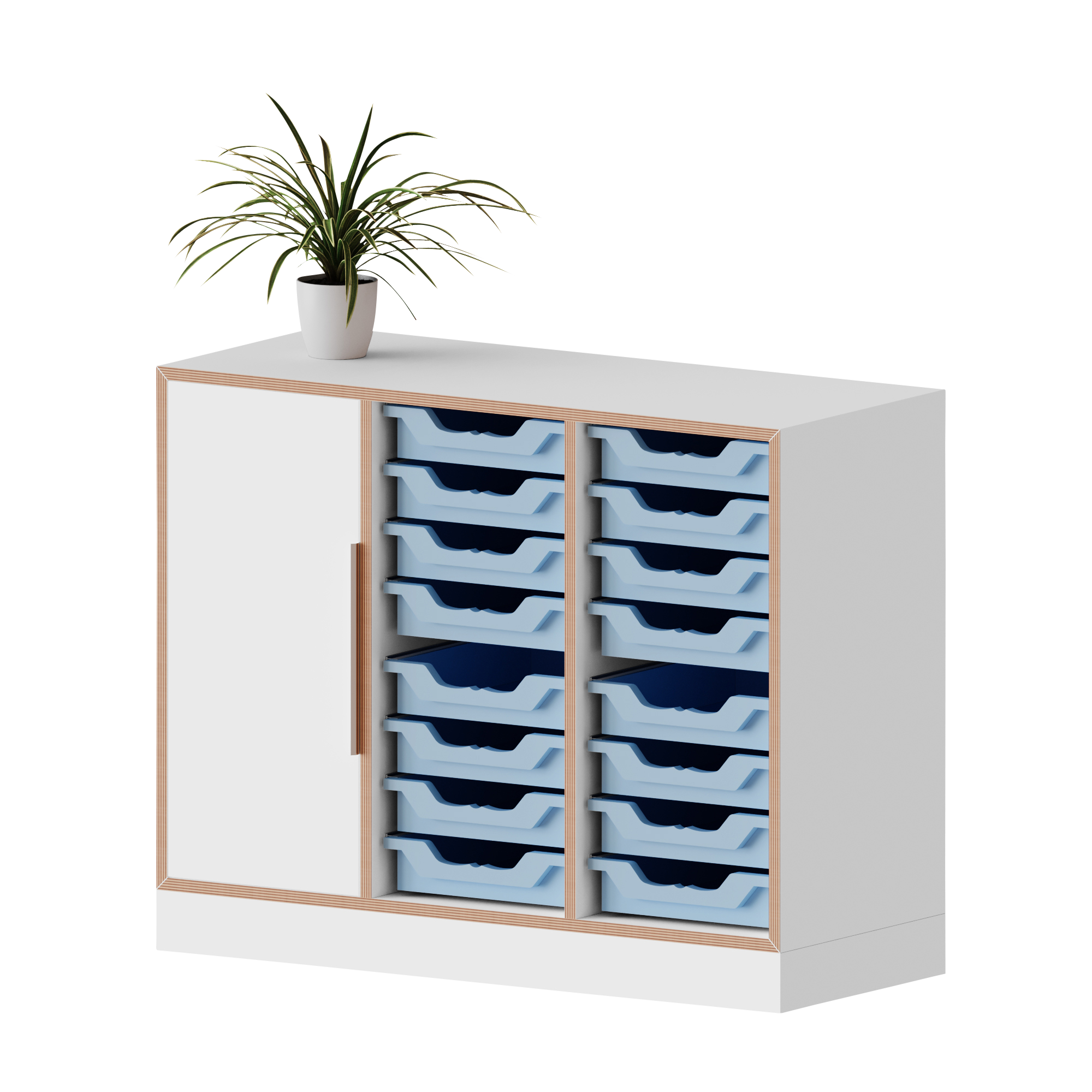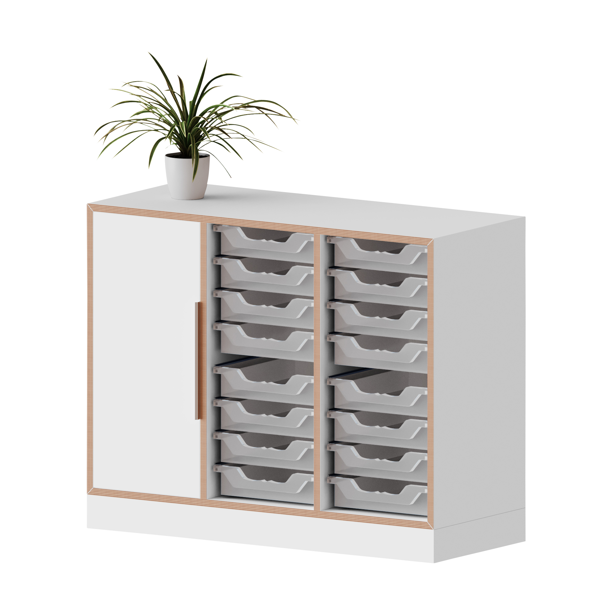 The cabinet boasts plenty of storage space and mobility, making it suitable for use in both schools and offices. It contains 16 small Ergo Tray boxes in which all your documents can be organized. In addition, the cabinet system can be extended at any time and can also be ordered with a set of castors, two of which are lockable.