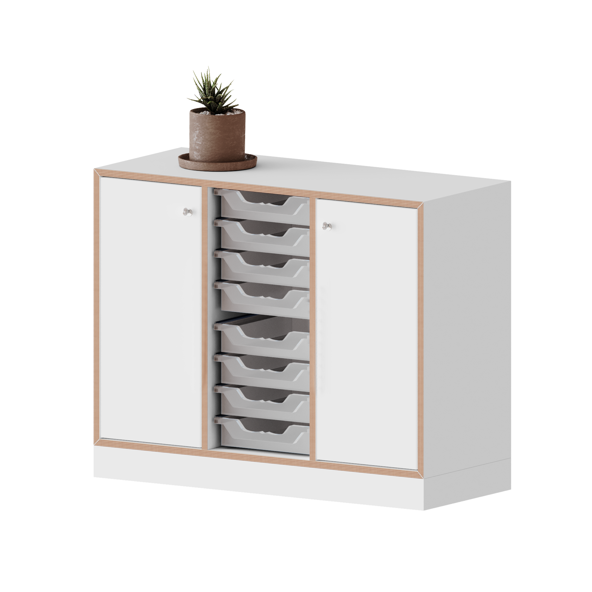 The cabinet boasts plenty of storage space and mobility, making it suitable for use in both schools and offices. It contains 8 small Ergo Tray boxes in which all your documents can be organized. In addition, the cabinet system can be extended at any time and can also be ordered with a set of castors, two of which are lockable.