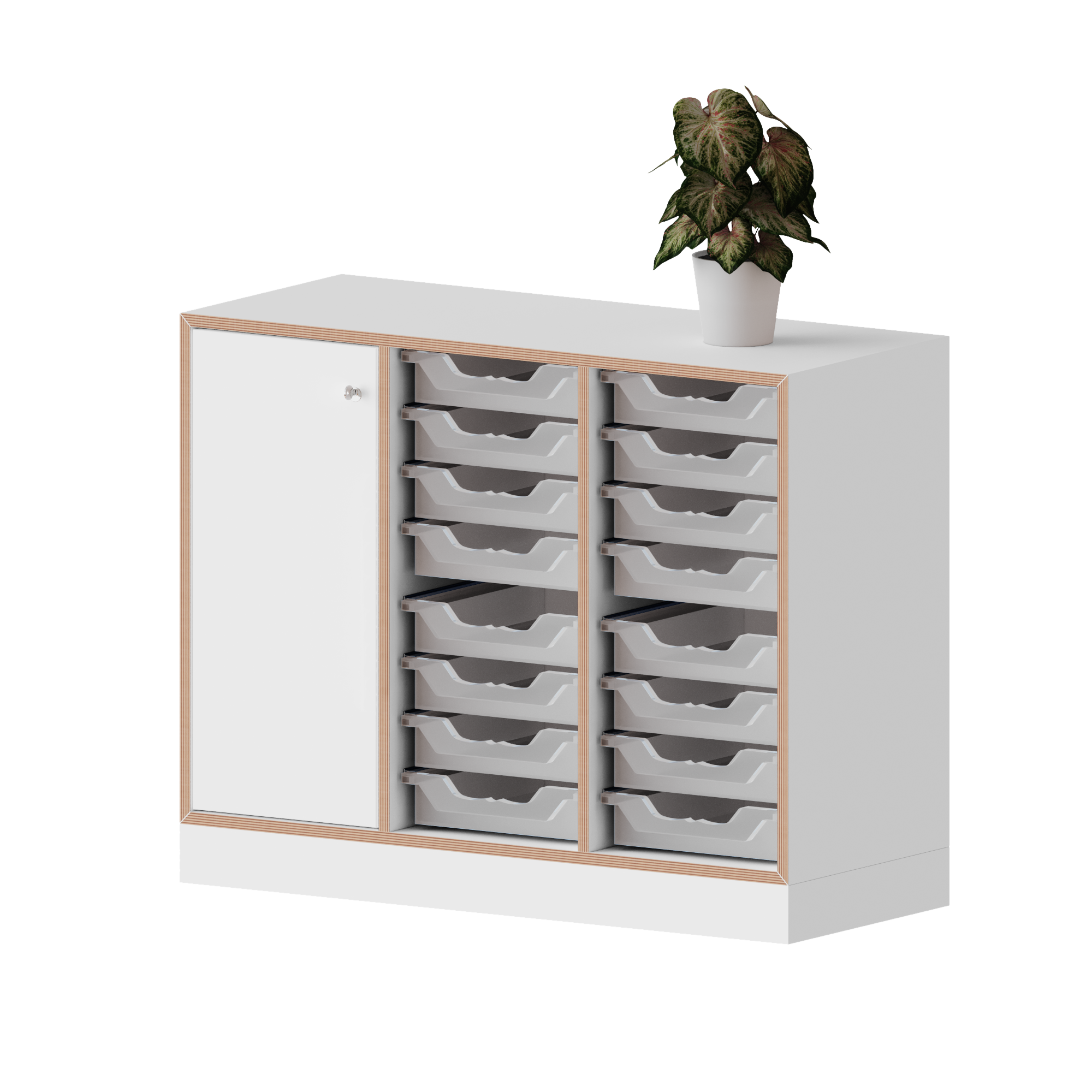 The cabinet boasts plenty of storage space and mobility, making it suitable for use in both schools and offices. It contains 16 small Ergo Tray boxes in which all your documents can be organized. The cabinet system can also be extended at any time and can be ordered with a set of castors, two of which are lockable.