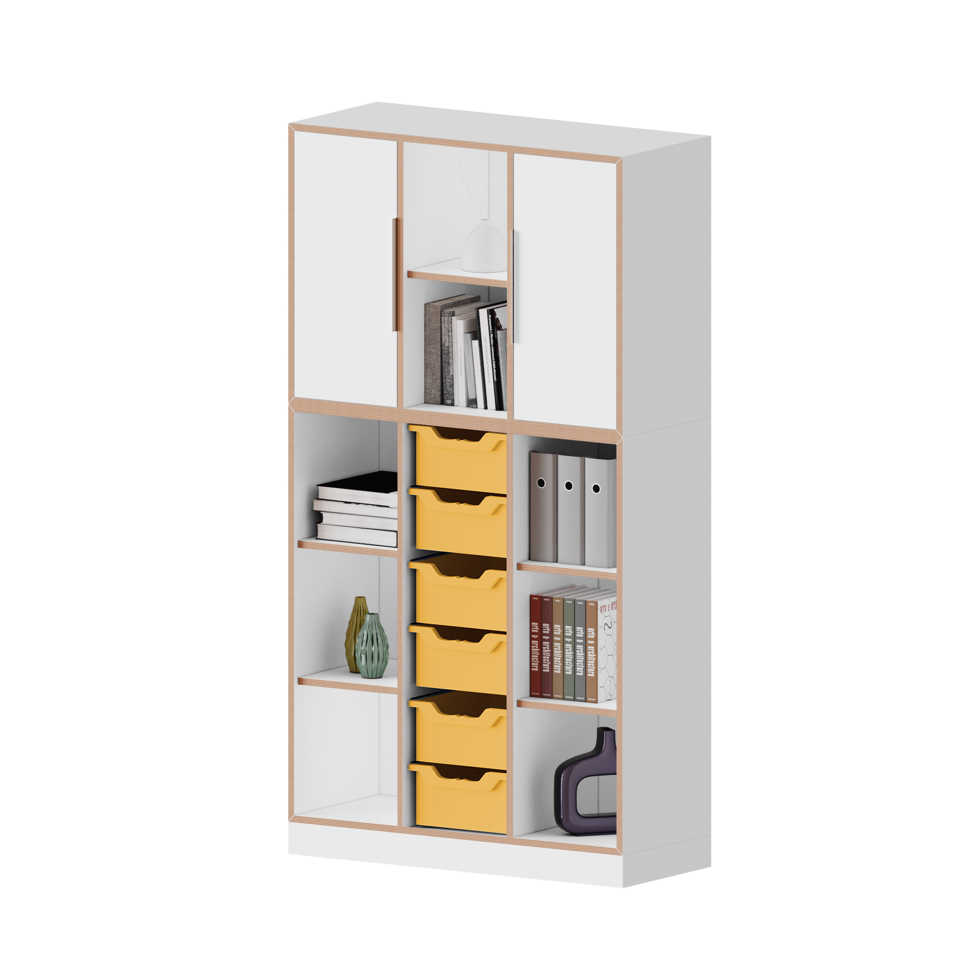 The cabinet boasts plenty of storage space and mobility, making it suitable for use in both schools and offices. It consists of a cabinet with 3 file heights and an additional top cabinet with 2 file heights. It also includes 6 large Ergo Tray boxes in which all your documents can be organized. The cabinet system can also be easily extended at any time.