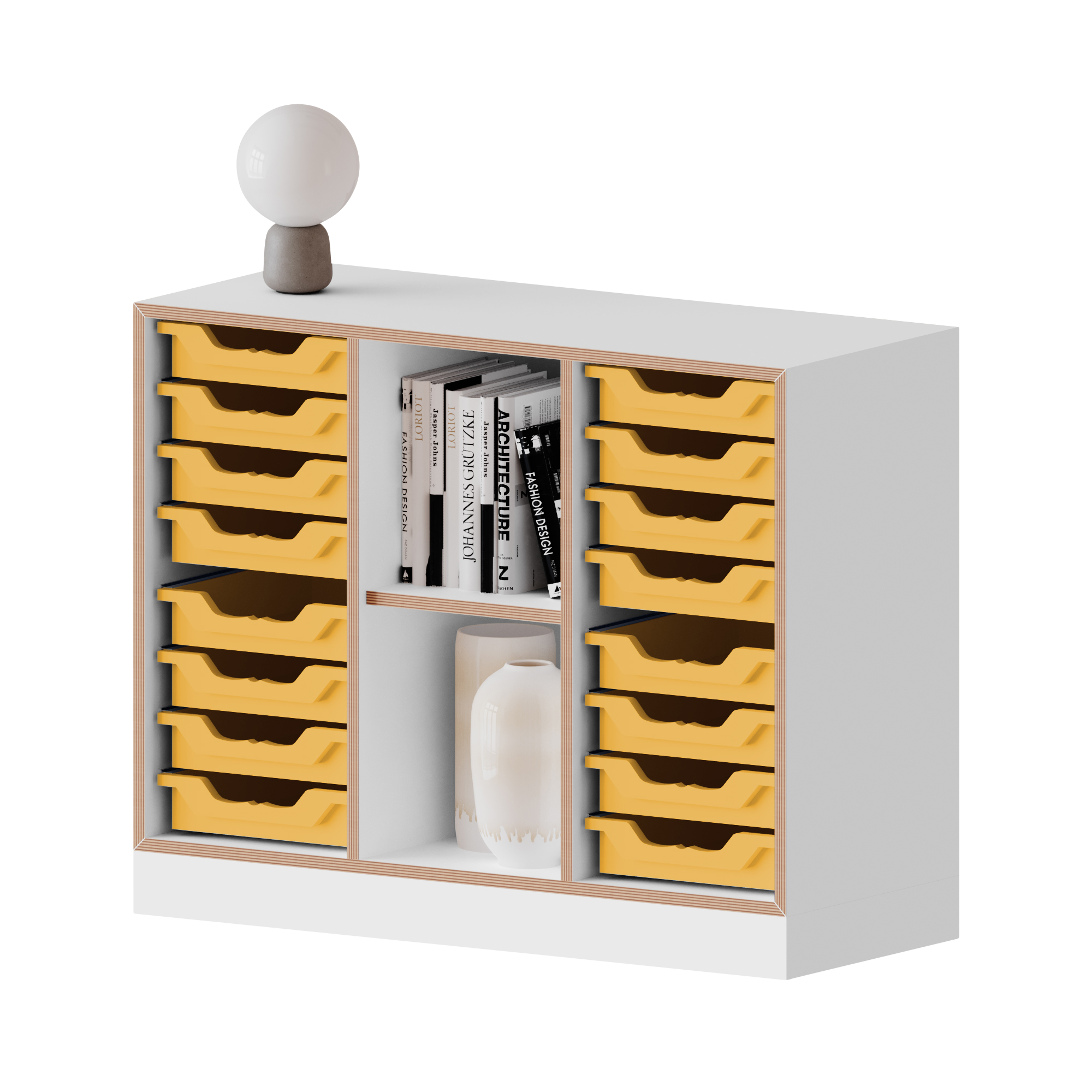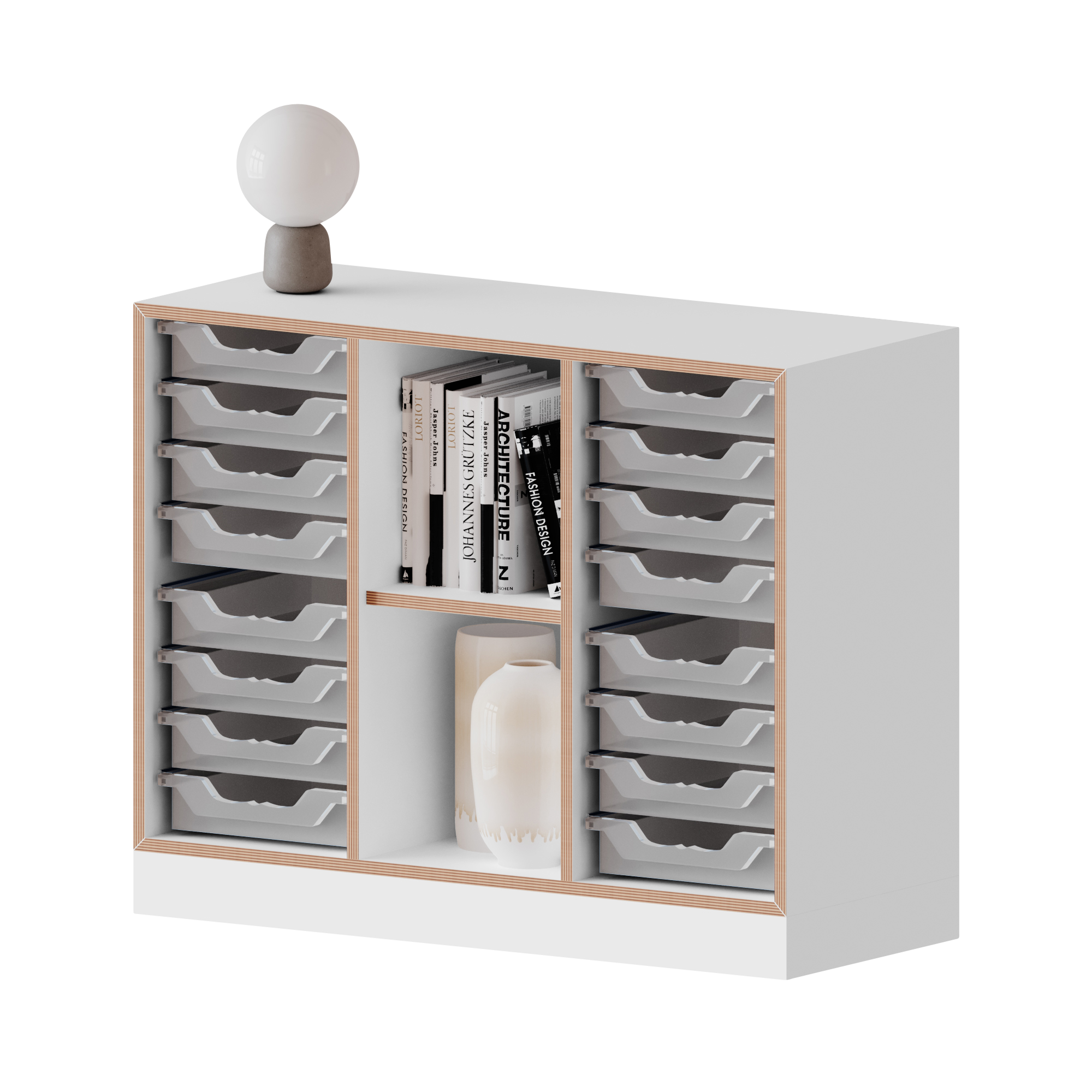 The shelf shines with plenty of storage space and mobility, making it suitable for use in both schools and offices. It contains 16 small Ergo Tray boxes in which all your documents can be organized. In addition, the cabinet system can be extended at any time and can also be ordered with a set of castors, two of which are lockable.